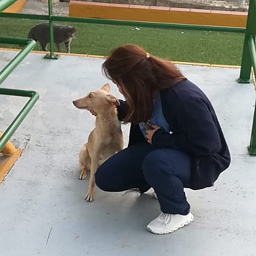 Il y a environ une année, elle a été retrouvée seule et complètement paniquée, dans l’enceinte de la prison située juste en face de la pension où sont accueillis nos chiens en Andalousie. Une dame a réussi à l’approcher, à l’attraper avec patience, puis a contacté notre partenaire… qui nous a demandé de l’aide.