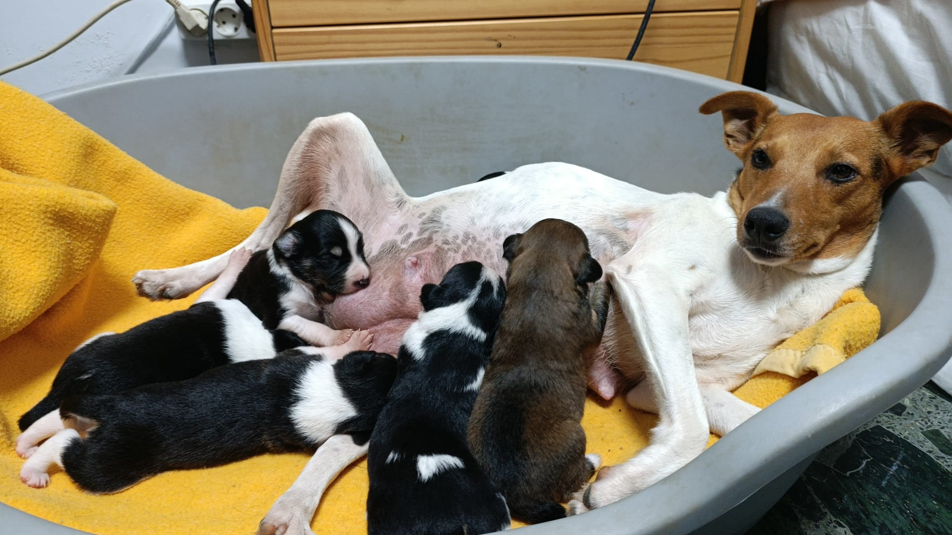 Leur maman Nini a été retrouvée gestante dans la rue le 16.12.25, prise en charge et mise en famille d’accueil par l’association Mastines en la Calle, elle a mis bas de 8 petites vies le 19.12.25.
